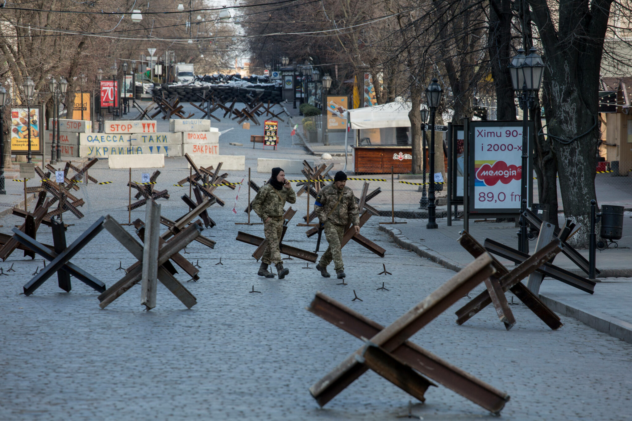 Сегодня южная пальмира не похожа на себя. Многие улицы по примеру известной Дерибасовской усеяны противотанковыми ежами. Памятники закрыты мешками с песком. А береговая линия заминирована полностью, чтобы предотвратить нападение с моря. Привычный гардероб курортного города сменился военным камуфляжем ВСУ и Теробороны.